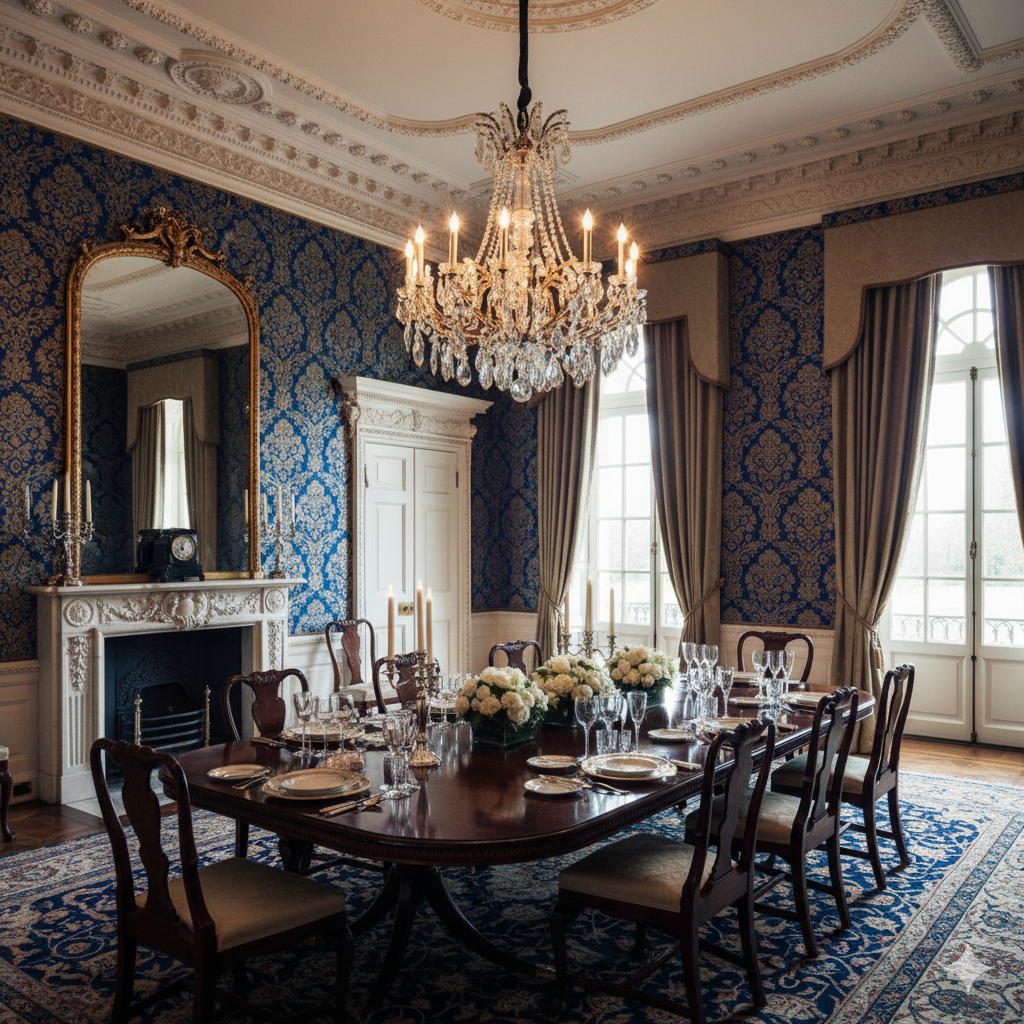 - The State Dining Room: This space should feel distinct and elevated, dedicated to the ceremony of formal dining. The design emphasizes luxurious materials like a polished wood or marble table, dramatic lighting from a grand chandelier, and high-quality tableware, echoing the superior style and artistic treatment of its historical counterpart .
